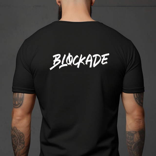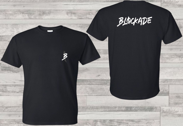 Introducing our classic black Blockade t-shirt featuring the iconic 'B' logo on the front. Made with premium materials, this shirt is comfortable and durable for daily wear. The back proudly displays 'Blockade' in bold lettering, making a statement wherever you go. Perfect for casual outings or as a standout addition to your wardrobe, this shirt is designed to fit any style. Get yours today and stay stylish with the Blockade t-shirt.